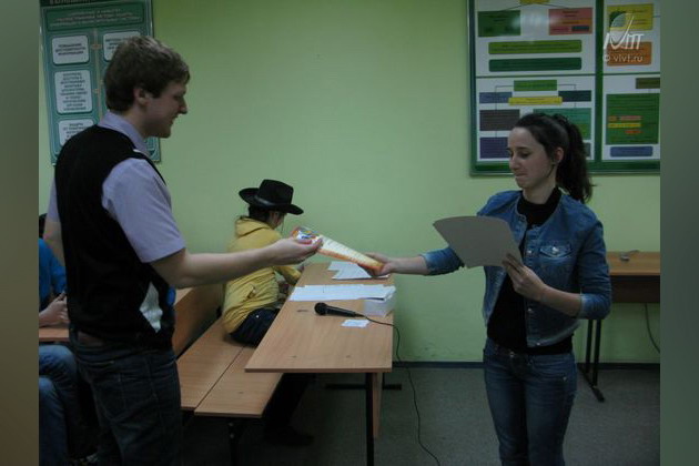 Зрительских симпатий удостоился Максим Грачёв, ИС-121. От от газеты «ВИВаТ!» ему вручён приз – эксклюзивный блокнот «Есть идея!». Виват, студент!