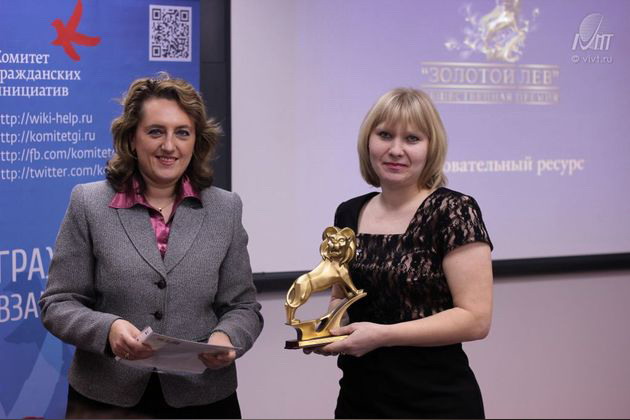 В этом году на соискание общественной премии «ЗОЛОТОЙ ЛЕВ» было заявлено более 300 работ. Часть из них была заявлена в номинации Образовательный ресурс, которая учреждена специально для руководителей и преподавателей муниципальных образовательных учреждений, которые основным принципом своей работы считают модернизацию образовательного процесса. Награды в этой номинации вручала Вера Николаевна Кострова, профессор, д.т.н., проректор по мониторингу качества ВИВТ: