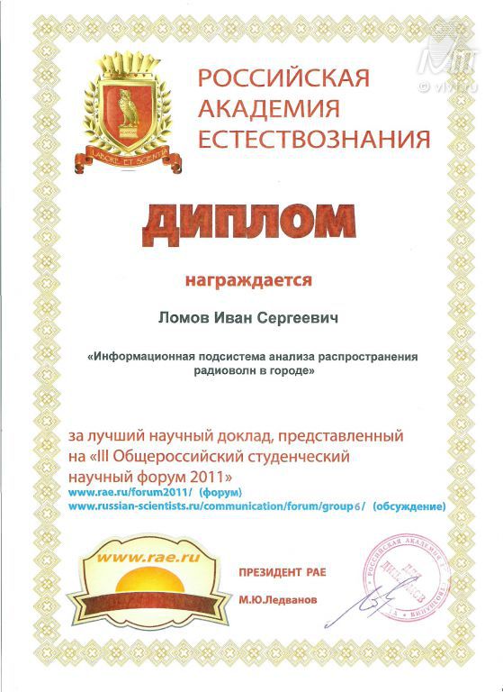 Новости и события ВИВТC 21 по 23 мая Российская Академия Естествознания проводила IV-ю Международную научную конференцию.
