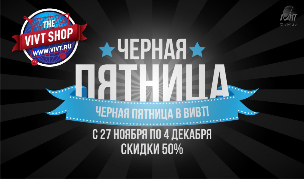Мы присоединяемся к черной пятнице и снижаем цены в нашем интернет-магазине VIVT SHOP. Только одну неделю с пятницы по пятницу скидки на все товары - 50%.