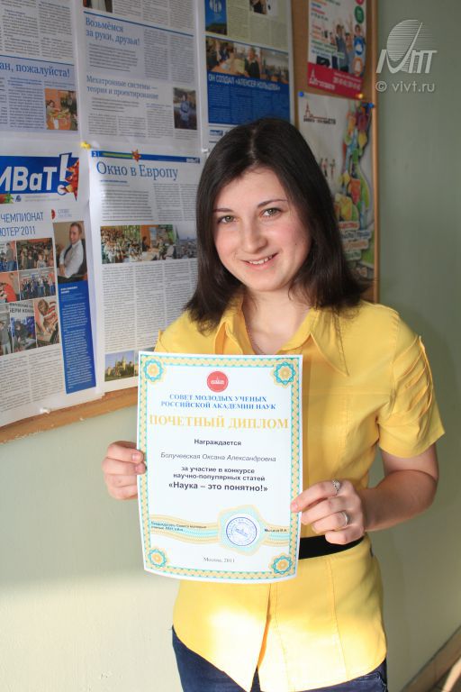 Дипломом Совета молодых ученых РАН была отмечена работа студентки ВИВТ Болучевской Оксаны.